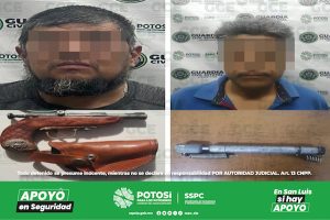S.L.P.- Acciones operativas efectuadas en la zona metropolitana y en el municipio de Villa Hidalgo, permitieron la detención de dos individuos por el probable delito