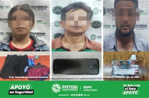 San Luis Potosí, S.L.P.- En diferentes acciones operativas, oficiales de la Guardia Civil Estatal (GCE) detuvieron a tres hombres, quienes fueron denunciados por las partes