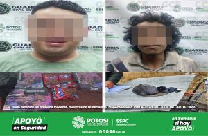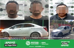 S.L.P.- Gracias a las acciones de seguridad que son efectuadas por elementos de la Guardia Civil Estatal (GCE), se detuvo a tres presuntos vendedores de