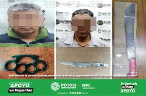 San Luis Potosí, S.L.P.- Elementos de la Guardia Civil Estatal lograron la detención de dos hombres que presuntamente se apoderaron de propiedad ajena y mercancía