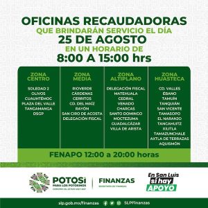 Estarán activas 34 oficinas de todo el Estado, de 8:00 a 15:00 horas y en el Stand de Fenapo de las 12:00 a 20:00 horas