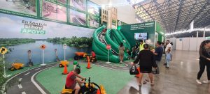 El módulo interactivo de la Junta Estatal de Caminos (JEC), instalado en la Feria Nacional Potosina (Fenapo), logra atraer la atención de personas de todas