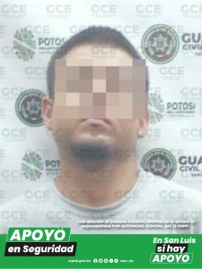 San Luis Potosí, S.L.P.- Una denuncia ciudadana tuvo como resultado la detención de un individuo, después de que agentes de la Guardia Civil Estatal (GCE)
