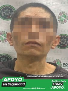 San Luis Potosí, S.L.P.- Una denuncia ciudadana atendida a través del Sistema de Emergencias 911, derivó en el arresto de un hombre por parte de