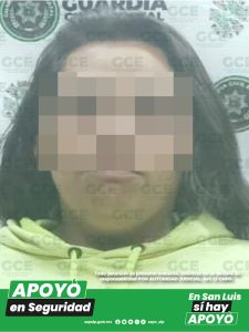 San Luis Potosí, S.L.P.- Elementos de la Guardia Civil Estatal aseguraron a una mujer acusada de abuso de confianza, luego de ser señalada por la