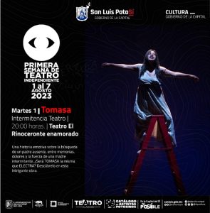 Del 1 al 7 de agosto se realizará la semana de teatro independiente con artistas del Catálogo de Artistas Potosinos. El martes 1 de agosto