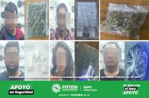 S.L.P.- Policías de la Guardia Civil Estatal (GCE) detuvieron en las últimas horas a 22 hombres y una mujer por presuntos delitos contra la salud