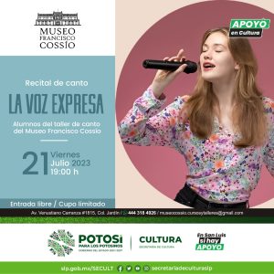 La cita es a las 19:00 horas, donde alumnas y alumnos del taller de canto presentarán “La voz expresa”. En apoyo a la formación de