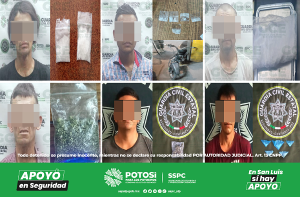 San Luis Potosí, S.L.P.- Como resultado de los diferentes operativos de seguridad y vigilancia implementados por los diferentes puntos de la capital potosina, siete personas
