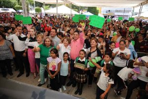 Ante cientos de estudiantes entusiasmados porque al término de sus vacaciones regresarán a la escuela con las herramientas necesarias para aprender, el Gobernador de San
