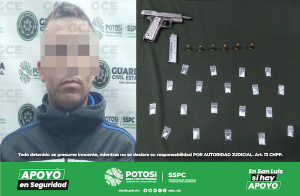 San Luis Potosí, S.L.P.- Tras el despliegue operativo emitido en la colonia Arbolitos, en la zona metropolitana, oficiales de la Guardia Civil Estatal (GCE) detuvieron