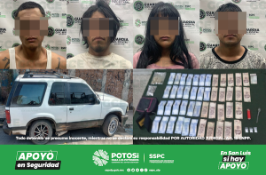 Los detenidos presumiblemente se dedican al robo al interior de vehículos al oriente de la capital potosina, fueron sorprendidos en flagrancia al tratar de huir