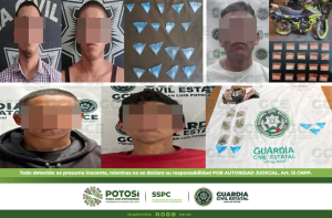 S.L.P.- Ante el combate sin tregua a la delincuencia, oficiales de la Guardia Civil Estatal (GCE) detuvieron en las últimas horas a cinco objetivos criminales