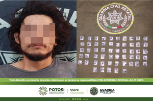 S.L.P.- Oficiales de la Guardia Civil Estatal (GCE) detuvieron a dos presuntos narcomenudistas en el interior del estado, derivado de los trabajos de análisis e