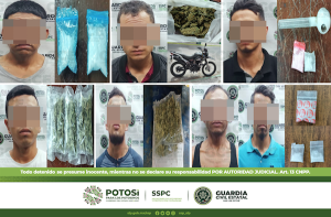 S.L.P.- Elementos de la Guardia Civil Estatal (GCE) detuvieron a 20 personas, en diferentes acciones operativas, por el presunto delito de posesión de droga, resultado