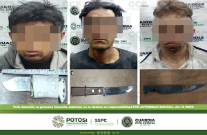 San Luis Potosí, S.L.P.- En diferentes dispositivos desplegados en la capital potosina, elementos de la Guardia Civil Estatal (GCE) detuvieron a tres individuos que presumiblemente
