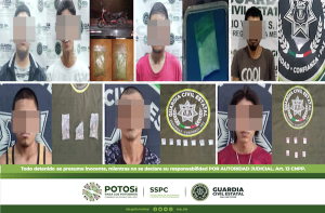 S.L.P.- En distintos hechos, oficiales de la Guardia Civil Estatal (GCE) detuvieron a 21 personas tanto en la capital potosina como en el interior del