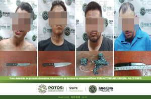 San Luis Potosí, S.L.P.- Como resultado de los operativos de disuasión y prevención, oficiales de la Guardia Civil Estatal (GCE) detuvieron a cuatro hombres por