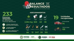 Dentro de las acciones relevantes se logró la captura de objetivos criminales en el municipio de Venado, en dos acciones distintas se aseguraron más de