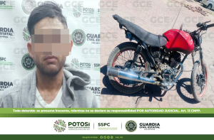 Soledad de Graciano Sánchez, S.L.P.- Agentes de la Guardia Civil Estatal aseguraron a un motociclista por conducir una unidad con reporte de robo con violencia