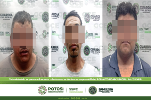 San Luis Potosí, S.L.P.- Como parte de los trabajos de seguridad y prevención implementados por la Guardia Civil Estatal en la capital potosina, tres hombres
