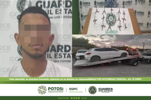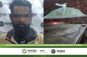 S.L.P.- Dentro del operativo Blindaje Altiplano, elementos de la Guardia Civil Estatal lograron detener a un conductor en el municipio de Matehuala que llevaba consigo