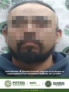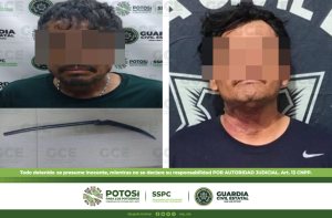 S.L.P.– Oficiales de la Guardia Civil Estatal (GCE) detuvieron a dos hombres, uno de ellos en la capital potosina y otro más en el municipio