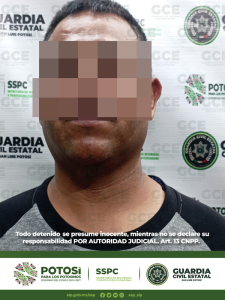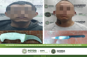San Luis Potosí, S.L.P.- Como parte de los trabajos de seguridad y prevención implementados por la Guardia Civil Estatal en la capital potosina, dos hombres
