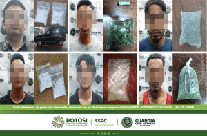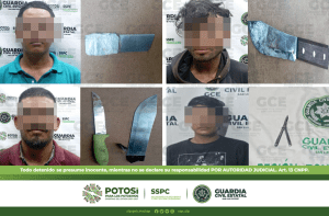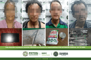 San Luis Potosí, S.L.P.- En diferentes acciones operativas, elementos de la Guardia Civil Estatal (GCE) detuvieron a cuatro personas señaladas por el probable delito de