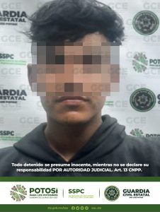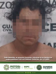San Luis Potosí, S.L.P.- En acciones de seguridad y vigilancia realizadas por las autoridades de la Guardia Civil Estatal (GCE), un hombre fue detenido en