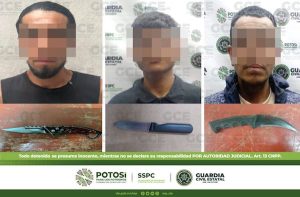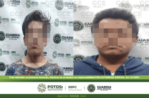 San Luis Potosí, S.L.P.- En recorridos sobre la colonia Polanco Segunda Sección, agentes de la Guardia Civil Estatal (GCE) detuvieron a dos hombres por el