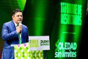 Al atestiguar el Primer Informe de Resultados del Alcalde de Soledad de Graciano Sánchez Juan Manuel Navarro Muñiz, el Gobernador de San Luis Potosí Ricardo