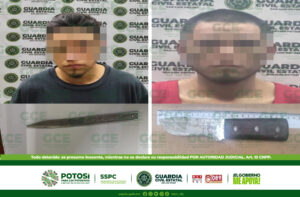 San Luis Potosí, S.L.P.- Patrullajes preventivos y disuasivos de la Guardia Civil Estatal, derivaron en la detención de dos hombres, por el probable delito de
