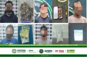 S.L.P.- Dentro de las acciones de prevención y disuasión de hechos delictivos, oficiales de la Guardia Civil Estatal (GCE) detuvieron a seis personas, luego de
