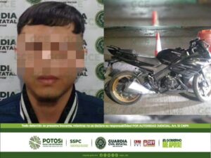San Luis Potosí.- Agentes de la Guardia Civil Estatal detuvieron a un hombre que conducía una motocicleta con placas sobrepuestas en calles de la colonia