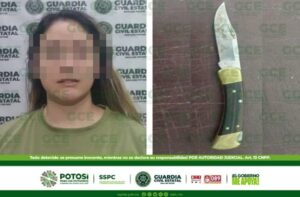 San Luis Potosí, S.L.P.- Agentes de la Guardia Civil Estatal detuvieron a una mujer señalada de haber amenazado con una navaja a otra en la