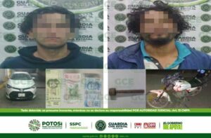 -Uno de los detenidos fue capturado en coordinación con autoridades municipales de Soledad de Graciano Sánchez. S.L.P.- Elementos de la Guardia Civil Estatal detuvieron a