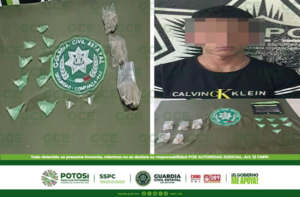 Cedral, S.L.P.- Como resultado de los trabajos preventivos, efectuados dentro del operativo Altiplano Seguro, agentes de la Guardia Civil Estatal (GCE), detuvieron a un presunto