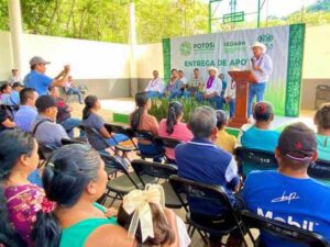 En una gira de trabajo por las comunidades de El Huizache, en Guadalcázar, y El Saucillo, en Ciudad Fernández, la presidenta estatal de Morena en