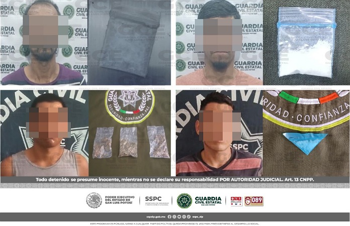 S.L.P.- Como resultado de los operativos de seguridad y vigilancia, efectuados por elementos de la GCE, en diferentes ubicaciones se detuvo a 14 personas, por el probable delito de posesión de estupefacientes.