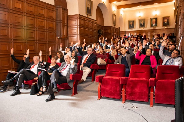 La sesión se realizó este viernes 19 de julio y fue presidida por el rector de la UASLP, doctor Alejandro Javier Zermeño Guerra -acompañado del secretario general maestro Federico Garza Herrera-, quien puso a consideración del pleno la propuesta presentada por la Federación Universitaria Potosina, que resultó avalada de forma unánime por las y los consejeros.