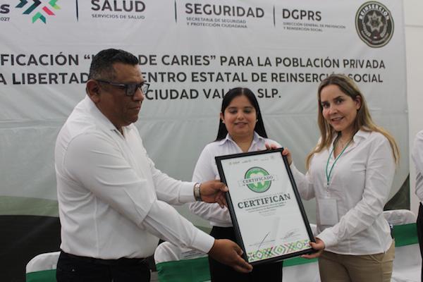 La Secretaría de Salud certificó como Libre de Caries al Centro Estatal de Reinserción Social de Ciudad Valles, resultado de un trabajo coordinado que refuerza la prioridad del Gobernador Ricardo Gallardo Cardona de acercar servicios de salud sin límites a todos los potosinos.