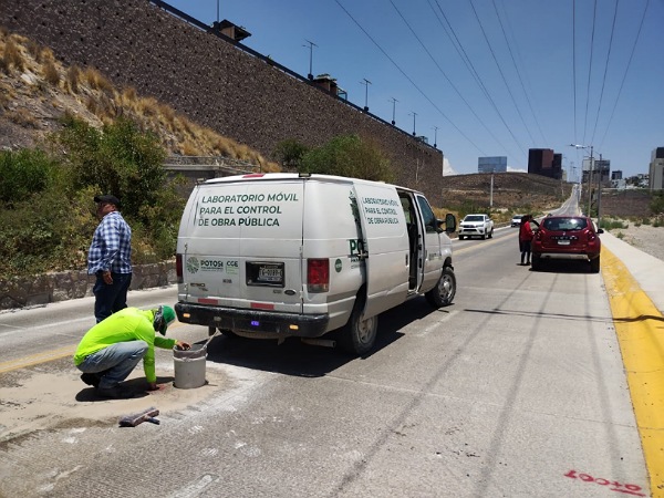Acorde a la visión del Gobernador del Estado, Ricardo Gallardo Cardona, de trabajo colaborativo para concretar mejores resultados, la dependencia realiza tareas de apoyo para cubrir los espacios donde para el control de calidad, se hace uso de una máquina de extracción que saca una muestra cilíndrica llamada corazón o núcleo que se resguarda y es llevada a un laboratorio para hacerle pruebas y determinar el espesor y compactación de la capa asfáltica.