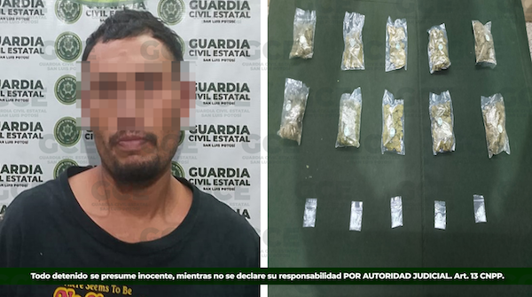 Al momento de la detención de José “N” de 32 años, se le decomisaron 10 bolsas con marihuana y cinco dosis de «cristal». Lo anterior se llevó a cabo como resultado de un operativo coordinado en el municipio señalado, tras labores de investigación e inteligencia desarrolladas por nuestras fuerzas del orden.