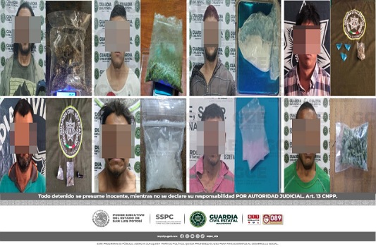 S.L.P.- En el marco de las acciones para evitar la venta y/o consumo de droga en territorio potosino, elementos de la Guardia Civil Estatal (GCE) detuvieron a 15 personas, en diferentes acciones, por el probable delito de posesión de droga.