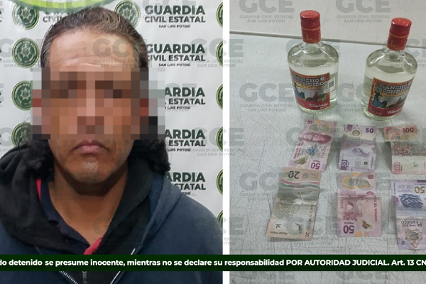 Los hechos tuvieron lugar en la colonia Plan Ponciano Arriaga, sitio a donde arribaron los elementos estatales y detuvieron a Juan “N” de 36 años, quien presuntamente trató de huir con dos botellas de licor y 320 pesos en efectivo.
