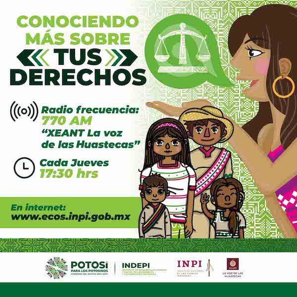 En 2024 hay más apoyo a las y los habitantes que pertenecen a pueblos y comunidades indígenas en las cuatro regiones, a través del programa de radio «Conociendo más sobre tus Derechos», que se transmite cada jueves con el propósito de brindar información actualizada, veraz y sustentada en el marco jurídico vigente tanto en español como en las lenguas indígenas tének, náhuatl y Xi´iuy.
