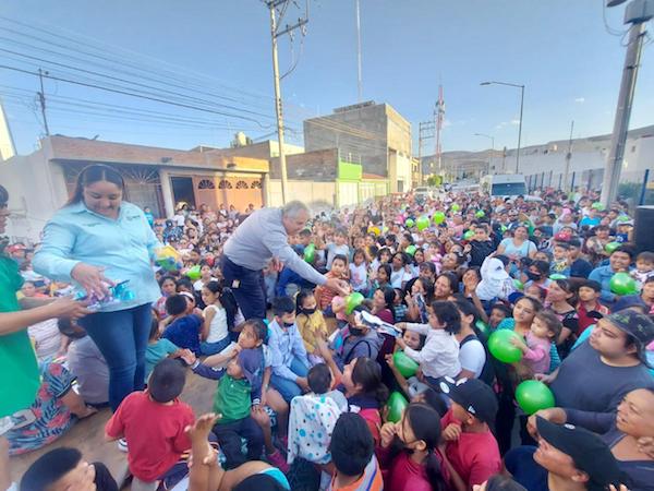 En representación del Gobernador, el secretario de Salud entregó juguetes en dicha colonia