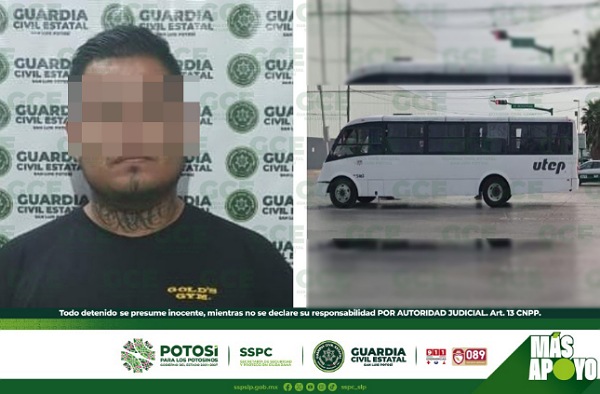 San Luis Potosí, S.L.P.- En respuesta a una llamada de auxilio, atendida por los operadores de la Línea de Emergencias 911, sobre un hecho de tránsito en donde una persona resultó lesionada, movilizó a los agentes de la Guardia Civil Estatal (GCE), quienes detuvieron a conductor de un vehículo de transporte de personal, señalado del probable delito de lesiones.