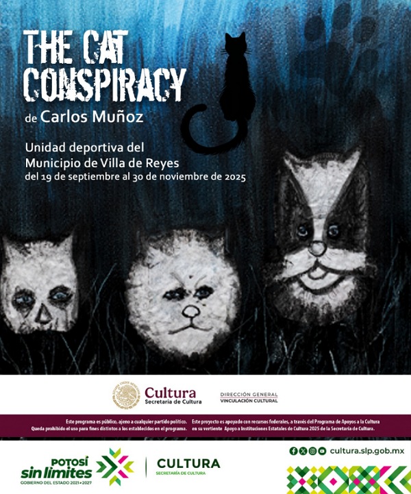 En el municipio de Villa de Reyes, la exposición “The Cat Conspiracy” del artista Carlos Muñoz se presenta en las instalaciones de la Unidad Deportiva, disponible del 19 de septiembre al 30 de noviembre de 2025. Por su parte, en el municipio de Ciudad Valles, se encuentra en exhibición “Infierno XXI” de Cesar Villegas, ubicada en el Museo de las Culturas de la Huasteca Potosina Tamuantzán, con vigencia del 23 de octubre al 30 de noviembre de 2025.